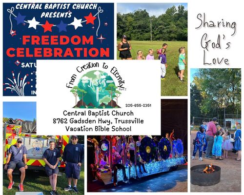 Central Baptist Church is committed to helping our community. We are centrally located allowing us to help serve a larger area. Currently we are serving in Argo, Springville, Odenville, Margaret and Trussville. We even minister to the Veterans in Pell City. Our goal is to spread the gospel to everyone we have contact with. CBC (Central Baptist Church) also host First Priority at Springville Schools and St. Clair County Schools. The ministry is not limited to the CBC campus; we are to go out into the world and spread His word. CBC hosts football camps, softball camps, trunk or treat, Vacation Bible School, Freedom Celebrations, and much more.